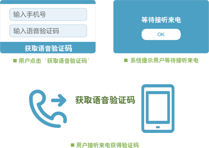 语音验证码业务将验证码通过语音电话直接呼到用户手机,从而实现电话语音播报验证码的一种验证方式。语音验证的出现,解决了用户可能因各种主客观问题无法接收到短信验证码的问题,使用户验证过程更为轻松、高效,从而达到用户体验最优化及最安全的效果。