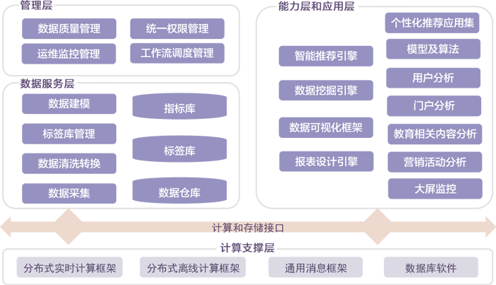 随着互联网教育行业的发展,教育资源和产品内容不断丰富,用户规模不断扩大。为更好推进互联网教育平台的发展,,通过新讯智慧教育解决方案,运用先进的大数据技术全面提升企业运营支撑等能力,进行个性化推荐与智能营销,智慧教育解决方案实现对学科教育资源、名校资源、精品课程三大类教育内容提供针对性内容管理、品质评估、资源分析与监控、知识点分析、内容关系分析等,支持对教育资源类型的教案、课件、素材、习题、微课、视频等进行分析,基于分析结果支撑经营决策。