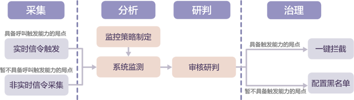 当前诈骗电话层出不穷,剧本五花八门、变化多样,不仅呈现手法逐步升级、作案手段日趋隐蔽的特点,且跨省、跨境犯罪猖獗,诈骗犯罪团伙呈现产业化发展、企业化运作,扰乱人民群众正常生活秩序,而且带来了巨额财产损失。随着电信运营商打击整治诈骗电话工作的开展,电信诈骗者逐渐转移战场,将目光瞄向监管困难的国际电话。据有关部门数据统计,目前我国 90% 的诈骗电话来自境外,现网缺乏对国际诈骗电话的甄别拦截;同时各类犯罪团伙防封堵能力很强,防治体系需要不断调整分析和拦截策略才能发挥最大功效。国际诈骗电话集中监控系统针对进入移动运营商网络的所有国际来电呼叫进行诈骗电话分析识别、审核研判和监控治理,以“采集-分析-研判-治理”为主导思路,在平台侧对国际来电进行监控,并采取相应的封堵拦截措施,系统各个环节相互串接、环环相扣,每一个中间环节都包括自动执行、分段观察两种工作模式,同时首尾相接、自动闭环,形成一套自动化、流程化和一体化的智能监控体系。
