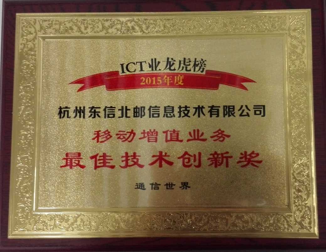 东信北邮荣获“2015年度移动增值业务最佳技术创新奖”
