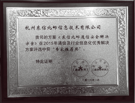 日前,在通信世界全媒体平台主办的“2015通信及行业信息化优秀解决方案”评选活动中,经编辑部的初审、专家评委的终审,东信北邮信息技术有限公司(以下简称东信北邮)《通信安全解决方案》最终评选为信