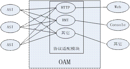 OAM是支持包括Web,Console,GUI等多种接入方式的操作管理平台,每一种方式都对应一个协议适配器,部署方式如图1所示。