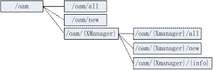 {XManager}中表示OAM具体的监控对象,如主机信息为/oam/hostManager。