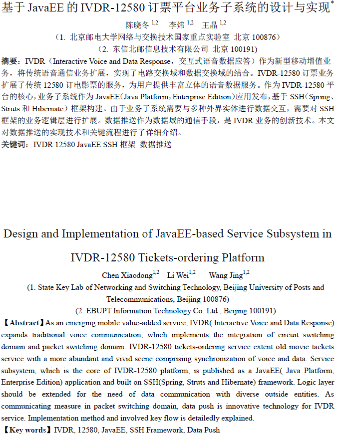 基于JavaEE的IVDR-12580订票平台业务子系统的设计与实现 2011-09 《电信工程技术与标准化》