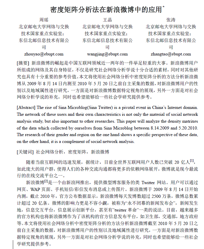 密度矩阵分析法在新浪微博中的应用 2011-11 《电信技术》