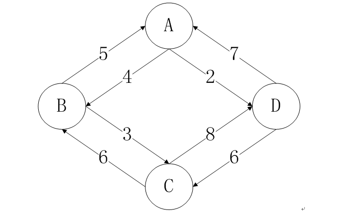 用一张有向带权图图1表示SNS网络中用户交流行为,权重表示互动交流量,方向指向表示交流行为的接受方: