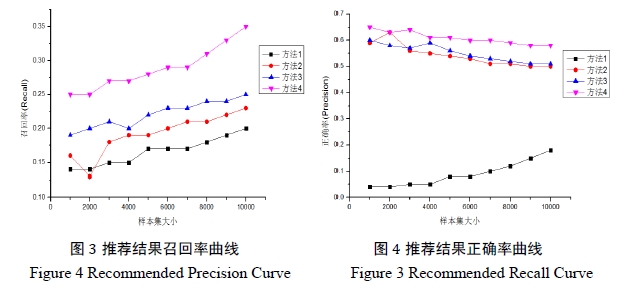 方法3:采用本文提出的基于特征分析的兴趣发现方法。 兼顾了方法1和方法2的优点,结果显示其召回率不断提升,正确率也维持在一个满意的规模内。各项指标较前两种方法都有一定的提升。