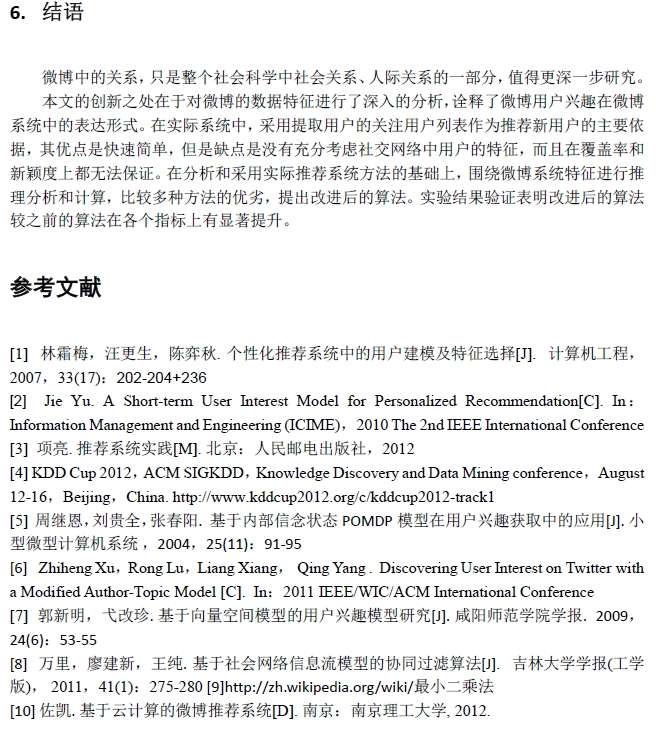 Key words: weibo; interest model; feature analysis; recommender system; collaborative filtering