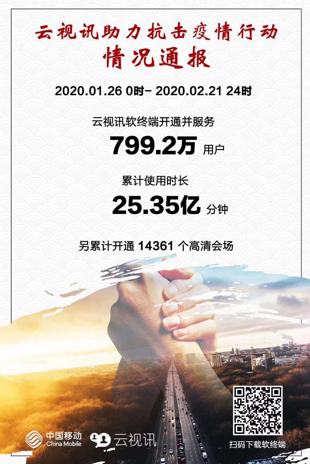 截止2020年2月22日,已投递各类宣传彩印2800万条;视频彩铃用户数已达9000万;企业视频彩铃用户2300万,比疫情开始时增长近11倍。