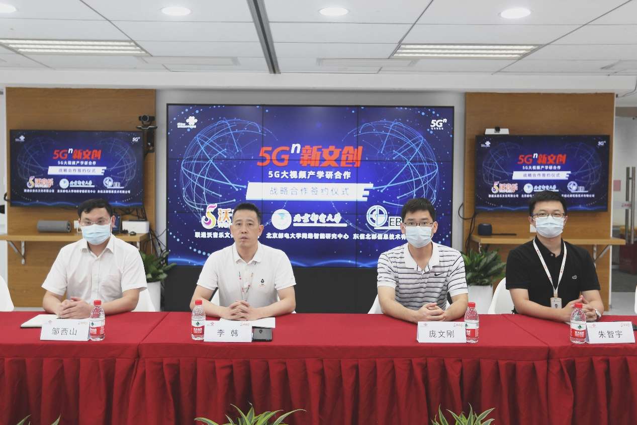 5月21日,东信北邮信息技术有限公司与联通沃音乐文化有限公司、北京邮电大学网络智能研究中心在“云”上举行了“5G大视频产学研合作”战略签约仪式,正式宣告在“5G大视频领域”形成产学研深度合作。