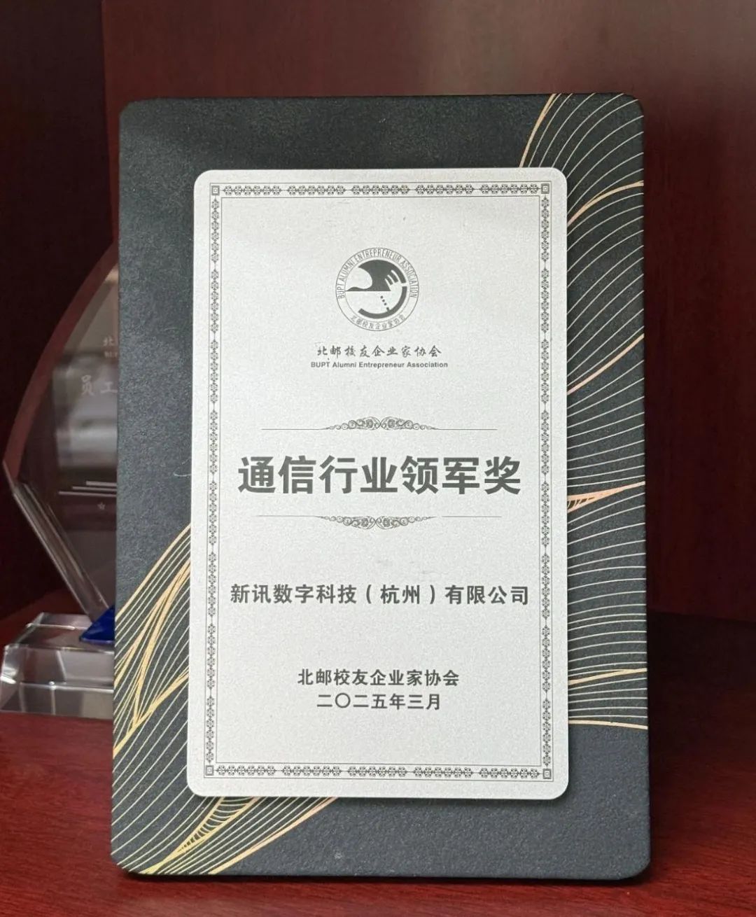 秘书长胡晓鹏代表北邮校友企业家协会向新讯颁发了“通信行业领军奖”奖牌。这一奖项不仅是对新讯在通信领域卓越成就的高度认可,更是对其持续推动行业创新与发展的激励。